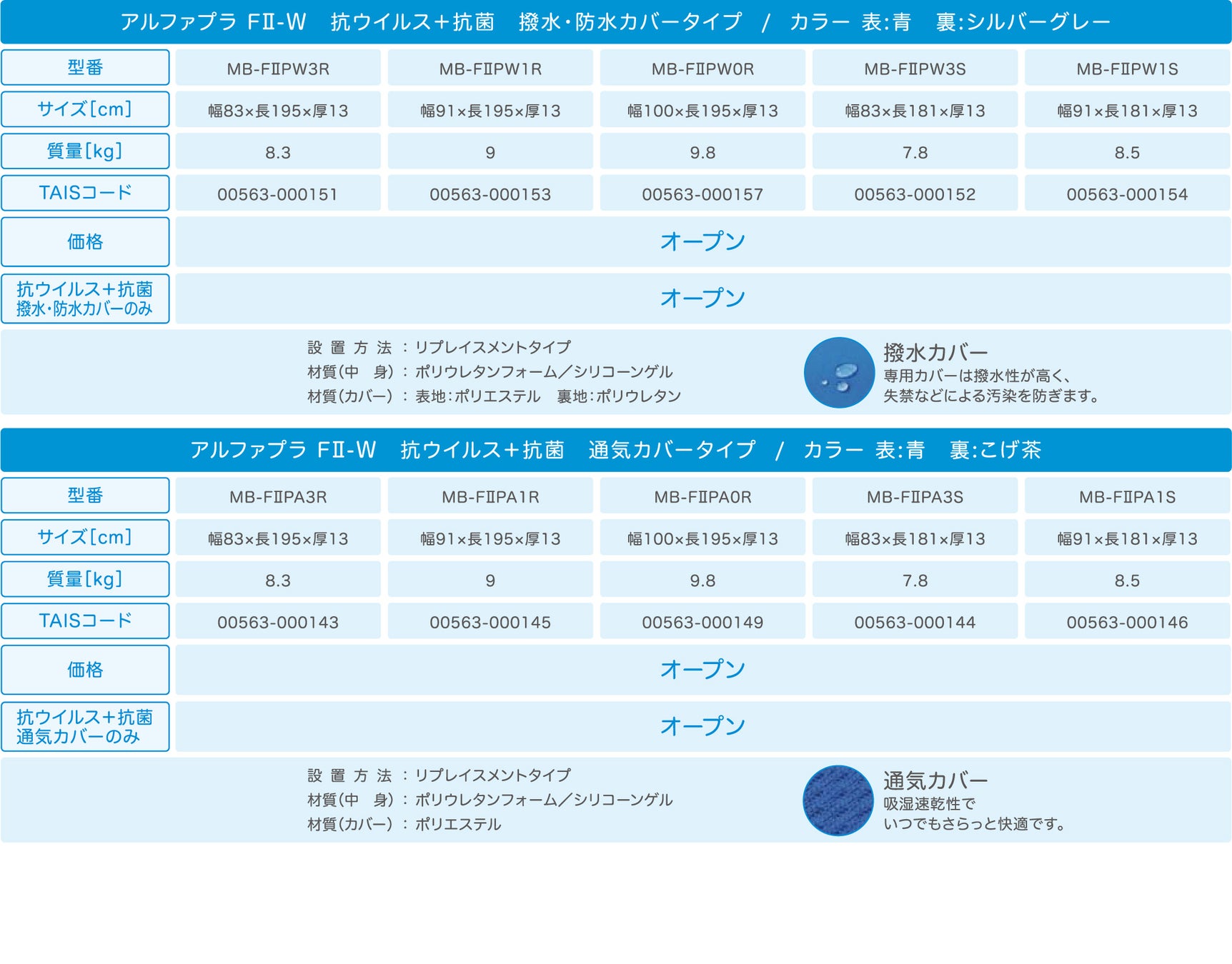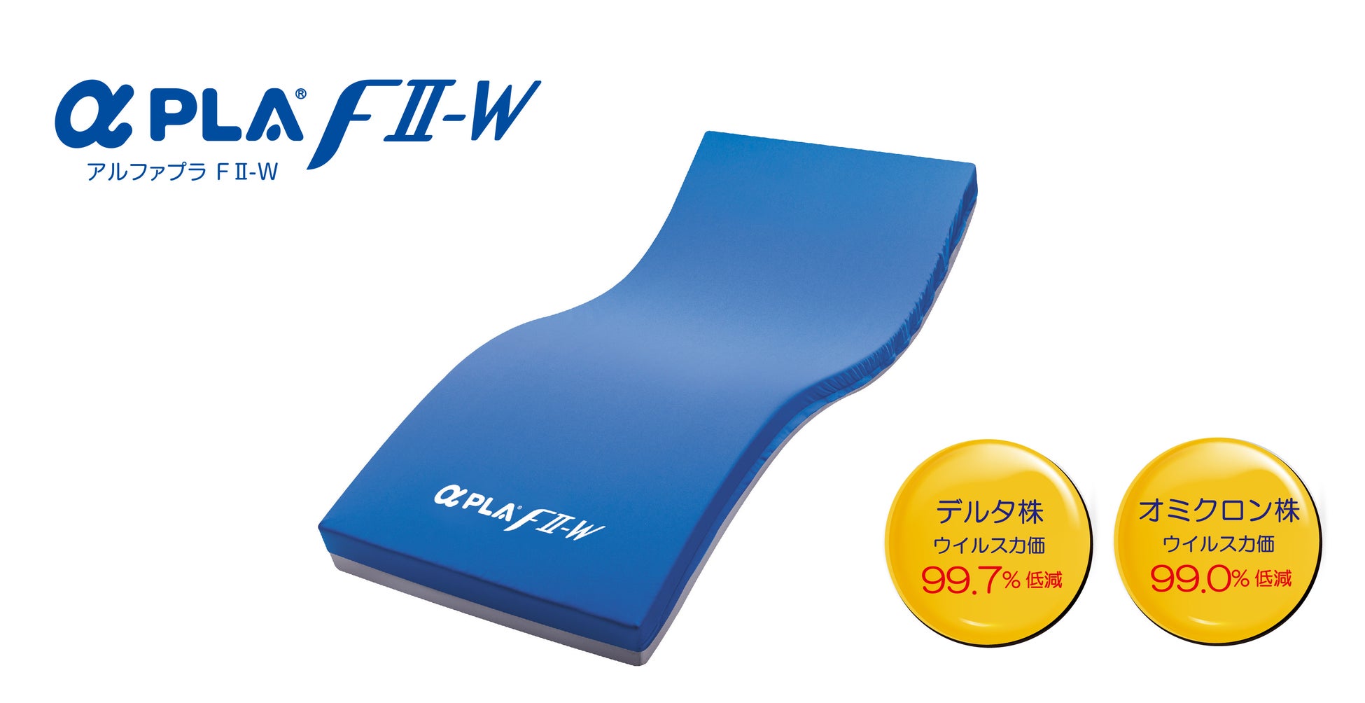 床ずれ防止マットレス「アルファプラ FⅡ-W」は、「アルファプラ F」のリニューアル製品として開発された「アルファプラ FⅡ」に、「抗菌」「抗ウイルス」のW加工を施したマットレスです。