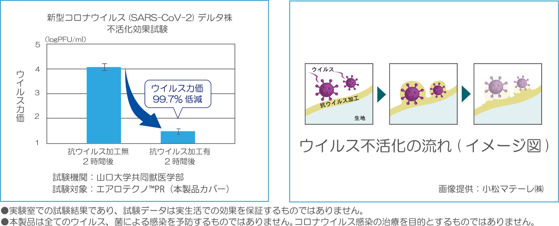 ※「エアロテクノ™PR」とは、小松マテーレ株式会社が開発した抗ウイルス加工素材です。