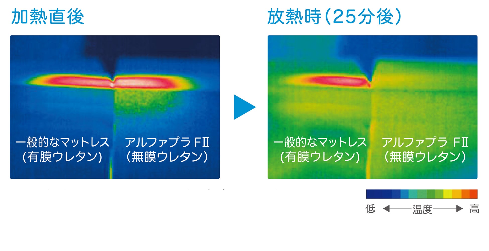 一般的なウレタンマットレスに比べ、熱の放散性能が30%以上向上しています。