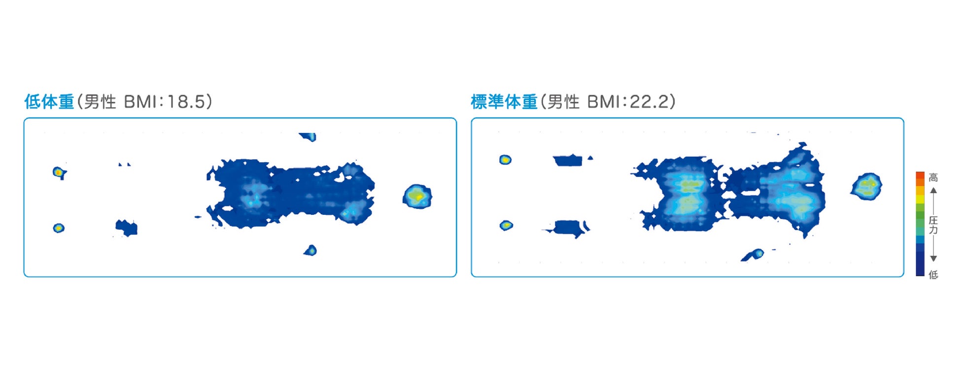 独自の加工と素材により、従来難しいとされていた体重の軽い方から重い方まで、ストレスの少ない寝姿勢を保持しながら床ずれを防止します。
