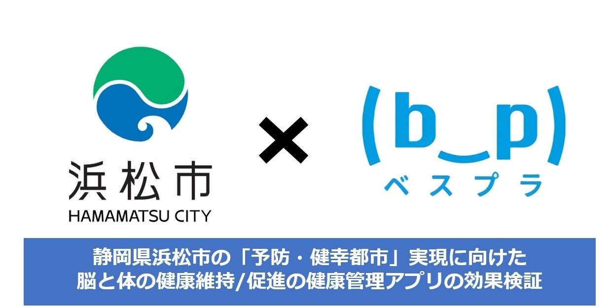 「予防・健幸都市」の実現のためには、市民が予防や健康に自発的に取り組むことが重要です。令和3年度浜松市実証実験サポート事業に採択されたベスプラでは、浜松市の「予防・健幸都市」の実現に向けた取組の一つとして、「脳と体の健康維持/促進に向けた健康管理アプリの大規模実証実験効果検証」で市民の自発的な健康管理を促進に向けた知見収集に取り組みます。
