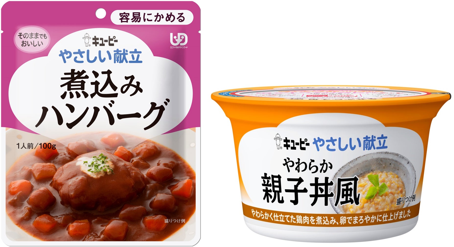 「やさしい献立」シリーズは、食べやすさに配慮した市販用介護食です。やわらかくする必要がある“介護食”は通常の食事に比べて災害時の確保が難しく、自然災害が多発する近年、キユーピーでは「やさしい献立」を非常食として備蓄する提案を続けています。