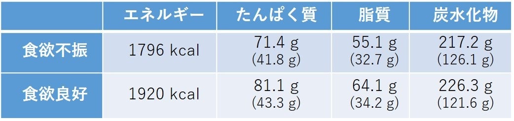 表1 食欲良好群と食欲不振群の栄養素等摂取量の比較
