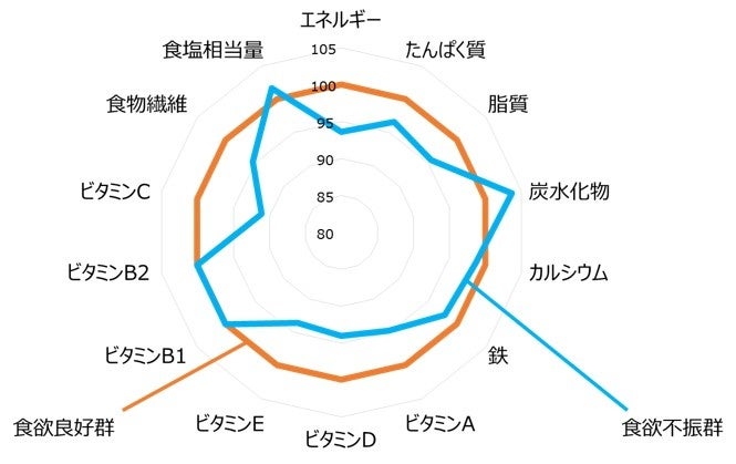 図2 食欲良好群を基準(100%)とした食欲不振群との摂取割合の比較
