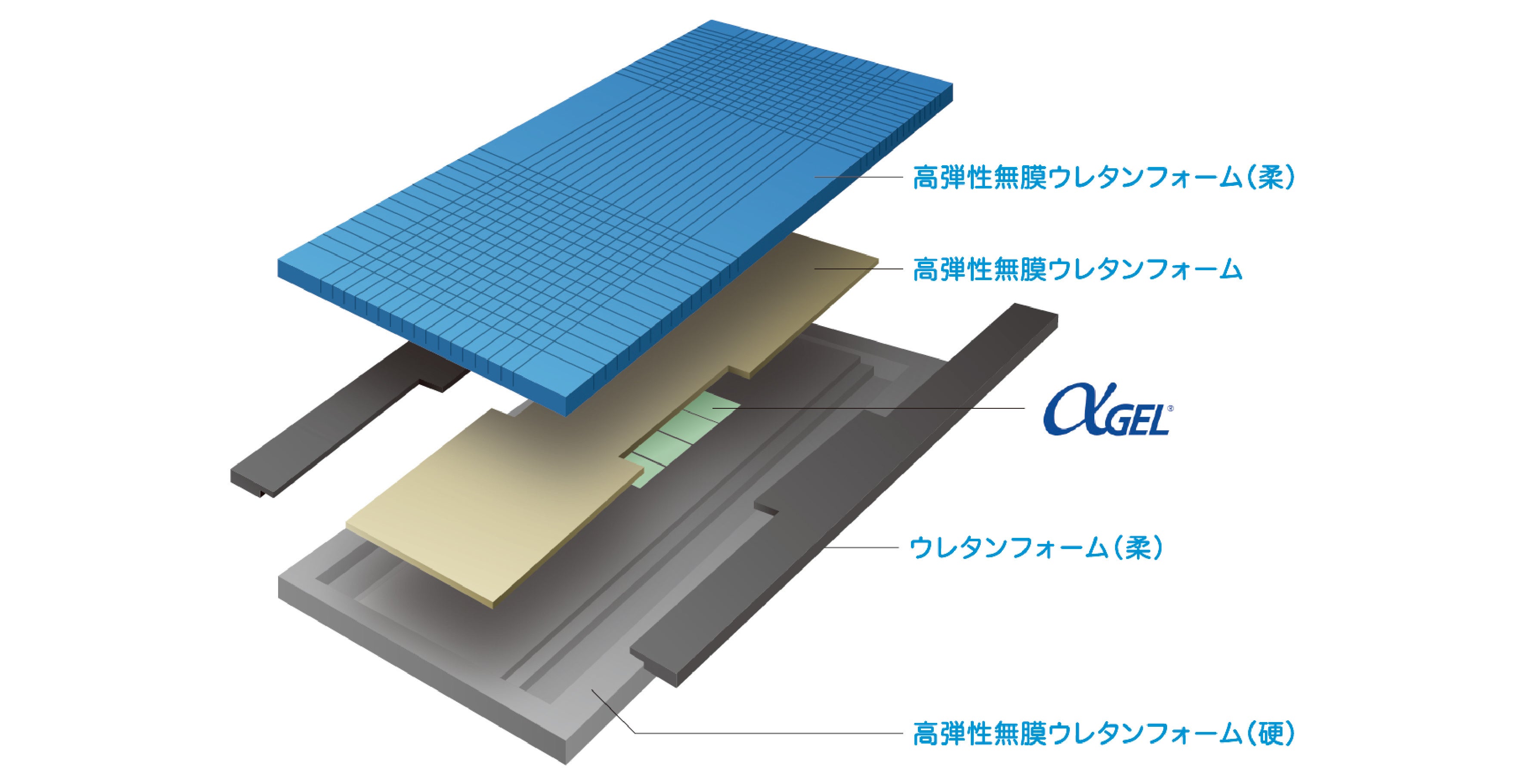 硬さや弾力の異なる素材を組み合わせた特殊構造により、寝返り時に必要な下肢の回転を「アルファプラ F」より容易に行うことができます。